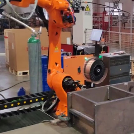机器人双工位气保焊(散热器行业) 本机器人双工位散热器气保焊系统,经变位机运行测试、预运行校准后启…