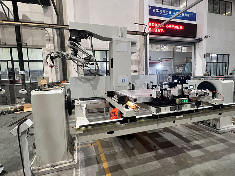 本机器人双工位散热器气保焊系统,经变位机运行测试、预运行校准后启动试运行。通过手动送料装夹、工件翻转续焊,实现焊缝精准成型,高效完成焊接作业并直观呈现焊接成果。
