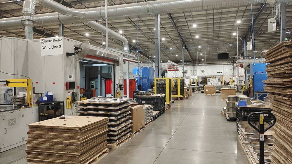 配置安川 AR2010/AR1440 机器人 + 福尼斯 CMT 焊枪 / 电源组成的三轴水平回转焊接工作站,搭配 6 台安川 GP215 搬运机器人、2 套机器人行走地轨、ATEQ D520 测漏仪、基恩士激光打标机、3 台螺母点焊机、2 台扩孔机、2 台 AGV、4 条辊道线及电气化工装、物流器具等设备,辅以封闭式焊接单元 + 焊烟净化系统的环保配置,实现高自动化、少人化生产,单件节拍 120S,高效满足各类尾气后处理组件的焊接、检测、打标等全流程需求。