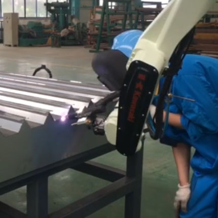 机器人双工位气保焊(散热器行业) 本机器人双工位散热器气保焊系统,经变位机运行测试、预运行校准后启…