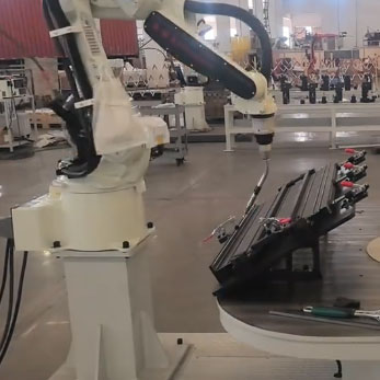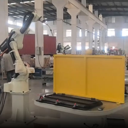 机器人双工位气保焊(散热器行业) 本机器人双工位散热器气保焊系统,经变位机运行测试、预运行校准后启…