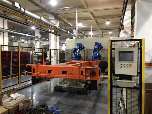 分总成焊接线:主要由机器人弧焊工作站、试漏机、手动补焊工作站、无动力辊道、吊具等设备组成;焊接零件上线,采用KBK吊具人工上下料方式,焊接分总成放入料箱后电动车或转运小车转运到总成焊接线;