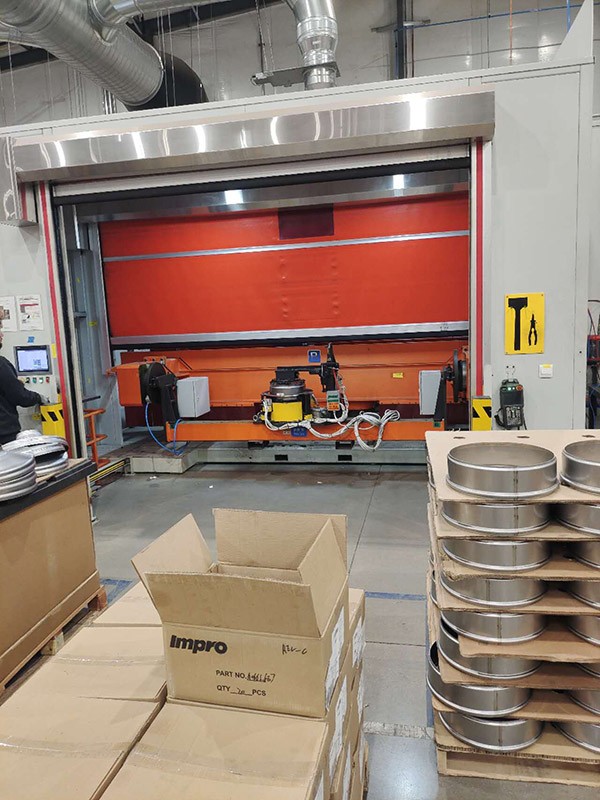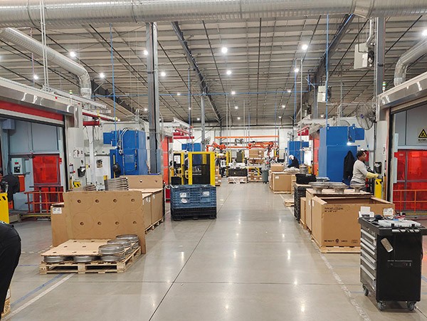 产线为机器人焊接和手工焊接相结合的方式,搬运方式:小零件人工上下料,载体组件及大焊接件由机器人上下料,测漏、检测等采用人工和平衡吊相结合的搬运方式,单工位换模≤30min。