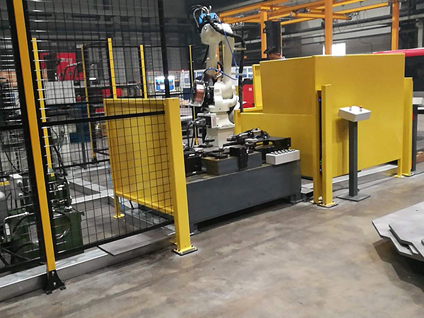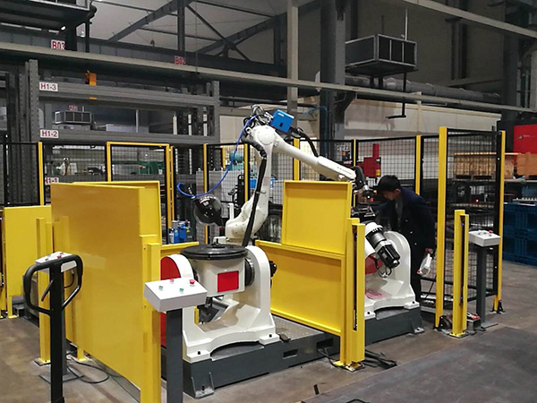 本工作站主要是CT机部件焊接,由两个双轴变位机,机器人和围栏组成,采用双工位焊接,双轴变位机上可成船型焊缝,提高了生产效率和焊接质量。