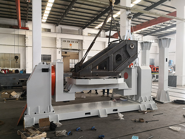本工作站主要是挖掘机底架转台的焊接,由一个单轴变位机,一个机器人立柱和一个侧挂在立柱上的机器人组成。