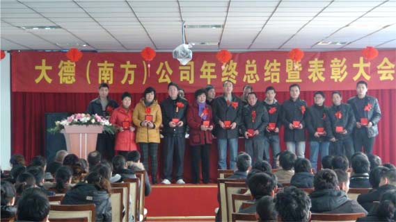 参加这次大会员工人数300+,会议时长2小时。在这次会议上,公司董事长与总经理分别对2011年度生产、销售、设计、工作等方面做了总结,而且规划了2012年度的发展方向。在这次大会上我公司评选了数名生产标兵。而且对工龄满10周年的员工发放了数万元的奖品。