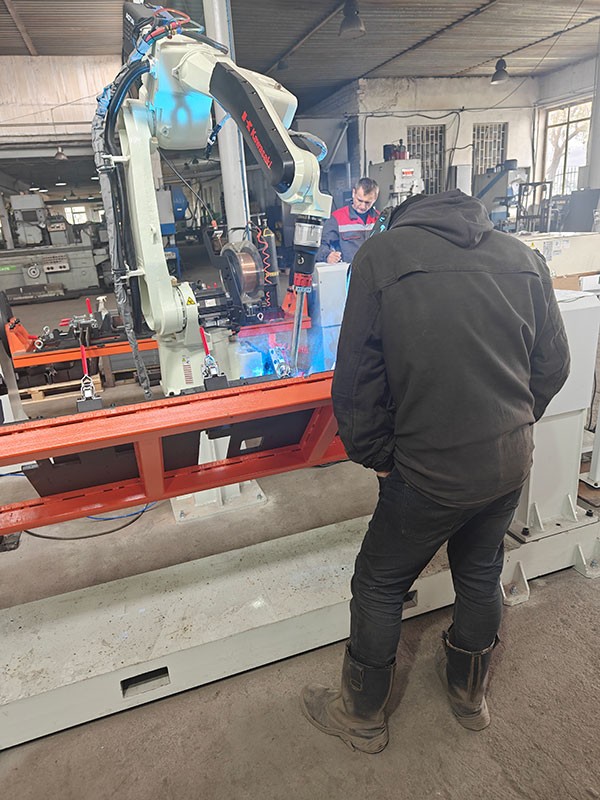 核心配置川崎机器人 BA013L,搭配 TRM612W 液冷焊枪,散热高效稳定,适配长时间连续焊接作业,确保焊缝质量均匀一致。配备头尾式伺服协调变位机与定制工装,精准匹配工件尺寸与焊接需求,实现复杂工件多角度、全方位焊接,变位平稳无偏差。双工位操作系统支持交替作业,大幅提升生产效率,减少设备闲置时间;集成完善电气控制系统,实现焊接参数精准调控、设备协同联动,操作便捷易上手。整套方案聚焦工业自动化焊接场景,助力客户达成高效、精准、稳定的生产目标,适用于各类高精度焊接需求场景。