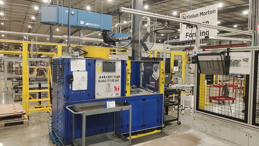 配置安川 AR2010/AR1440 机器人 + 福尼斯 CMT 焊枪 / 电源组成的三轴水平回转焊接工作站,搭配 6 台安川 GP215 搬运机器人、2 套机器人行走地轨、ATEQ D520 测漏仪、基恩士激光打标机、3 台螺母点焊机、2 台扩孔机、2 台 AGV、4 条辊道线及电气化工装、物流器具等设备,辅以封闭式焊接单元 + 焊烟净化系统的环保配置,实现高自动化、少人化生产,单件节拍 120S,高效满足各类尾气后处理组件的焊接、检测、打标等全流程需求。